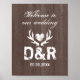 Affiche de mariage rustique en bois de cerf marron avec texture de bois de grange. Bienvenue à notre mariage.