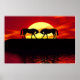 deux chevaux avant le coucher du soleil, rouge beau paysage