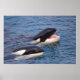 Fermeture de deux orques (Orcinus orca) ouvrant la bouche en eau bleue