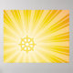 La Roue du Dharma est l'un des symboles universels du bouddhisme, représentant les enseignements collectifs de Bouddha, connu sous le nom de dharma. Chaque rayon dans la roue représente une étape sur le Noble huit chemin. Cette affiche est conçue comme une simple affiche méditative du bouddhisme avec la roue du Dharma entourée de rayons lumineux d'énergie. Relaxez-vous et soyez attentifs !