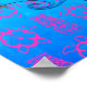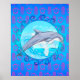 Dauphin sautant à travers un symbole du soleil maori avec un océan bleu et voilier derrière. Tortues Honu rose et masques de tiki rose motif sur un arrière - plan bleu océan.