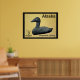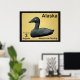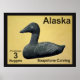 Un timbre-poste d'un Alaska mythique et indépendant, orné d'une sculpture en pierre à savon d'un canard à Eider. L'arrière - plan est peau d'orignal tannée au cerveau. Il s'agit d'un rendu numérique, pas d'un objet en pierre à savon. L'Eider à duvet, Somateria mollissima, est le plus grand canard d'Europe et d'Amérique du Nord (à l'exception du Canard de la Muscovy qui ne touche que l'Amérique du Nord dans un état sauvage à l'extrême sud du Texas) L'Eider est distribué sur les côtes nord de l'Europe, de l'Amérique du Nord et de la Sibérie orientale. Il se reproduit dans l'Arctique et dans certaines régions tempérées du nord, mais hiverne un peu plus au sud dans les zones tempérées, lorsqu'il peut former de grands troupeaux dans les eaux côtières. Il peut voler à des vitesses allant jusqu'à 70 mi/h (113 km). L'Eider se caractérise par sa forme encombrante et son grand bec en forme de coin. Le mâle est indéniable, avec son plumage noir et blanc et sa nuque verte. La femelle est un oiseau brun, mais on peut toujours facilement la distinguer de tous les canards, sauf d'autres espèces d'eiders, en fonction de la taille et de la forme de la tête. L'appel de ce canard est un joli "ah-ooo". L'espèce est souvent facilement accessible. Les dessins des races d'Europe, de l'Est de l'Amérique du Nord et d'Asie/Ouest de l'Amérique du Nord peuvent être distingués par des différences mineures de couleur du plumage et du bec. Cette espèce plonge pour les crustacés et les mollusques, les moules étant un aliment favori. L'Eider mangera les moules en les avalant entières; les coquilles sont ensuite écrasées dans leur estomac et excrétées. Lorsque vous mangez un crabe, l'Eider enlève toutes ses griffes et ses pattes, puis il mange le corps de la même façon. Il est abondant, avec des populations d'environ 1,5-2 millions d'oiseaux en Amérique du Nord et en Europe, et aussi un grand nombre mais inconnu dans l'est de la Sibérie. Une colonie d'eiders particulièrement célèbre vit sur les îles Farne, à Northumberland, en Angleterre. Ces oiseaux ont fait l'objet de l'une des premières lois sur la protection des oiseaux, établie par Saint Cuthbert en 676. Environ 1 000 couples y nichent encore chaque année. Comme Saint-Cuthbert est le saint patron de Northumberland, il était naturel que l'eider soit choisi comme oiseau emblème du comté; les oiseaux sont encore souvent appelés canards de Cuddy dans la région, "Cuddy" étant la forme familière de "Cuthbert". L'Eidre commun est l'une des espèces auxquelles s'applique l'Accord sur la conservation des oiseaux aquatiques migrateurs d'Afrique-Eurasie (AEWA). Les eiders sont des éleveurs coloniaux. Ils nichent sur les îles côtières dans des colonies de moins de 100 à plus de 10 000 à 15 000 individus. Les eiders femelles présentent souvent un haut degré de philopatrie natale, où ils reviennent se reproduire sur la même île où ils ont été éclos. Cela peut conduire à un degré élevé de relation entre les individus qui nichent sur la même île, ainsi que le développement de structures sociales féminines basées sur la parenté. Cette relation a probablement joué un rôle dans l'évolution des comportements de reproduction coopératifs chez les eiders. Parmi ces comportements, on peut citer la ponte d'oeufs dans les nids d'individus apparentés et la crèching, où les eiders femelles s'associent et partagent le travail d'élevage des ducklings. Le nid de l'eider est construit près de la mer et est bordé de la célèbre édredon, arraché du sein de la femelle. Ce revêtement doux et chaud a été longtemps récolté pour remplir les coussins et les courtepointes, mais ces dernières années a été largement remplacé par le duvet des oies agricoles domestiques et des alternatives synthétiques. Bien que les coussins de duvet ou les courtepointes soient maintenant rares, la récolte des duvet se poursuit et est durable, comme cela peut être fait après que les canetons quittent le nid sans nuire aux oiseaux.