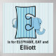 Affiches Élément de chambre bébé Éléphant Bleu Monogrammé