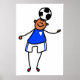 Caricature mignonne et fantaisiste d'un petit garçon jouant avec un ballon de football et montrant ses compétences en ballon. Customisez facilement et choisissez votre propre couleur arrière - plan ou ajoutez du texte. Image disponible sur divers cadeaux et produits.