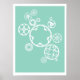 Vintages boucles et paniers en blanc, maillant sur un arrière - plan turquoise clair, dans les couleurs traditionnelles Bianchi.