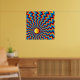Les formes Zigzag tournent autour d'un soleil stylisé dans une image d'affiche abstraite de la variété de mouvement illusoire.