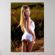 belle blonde modèle dans un champ, fin d'après-midi soleil