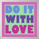 Ne le faites pas seulement, faites-le avec amour ! Dans des couleurs amusantes et audacieuses de rose, vert, violet et bleu.