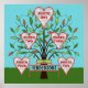 Faites votre propre affiche de collage de cinq photos personnalisées avec ce joli design modèle. Cette affiche murale carré a une belle image d'arbre d'été avec herbe verte, ciel bleu et feuilles dans les tons vert et orange. Tout est légèrement texturé. Un panneau se trouve devant l'arbre, où vous pouvez ajouter votre nom de famille en utilisant le modèle facile. "Changez" chacun des échantillons de photos à vos propres, aussi. "Customisez-le" pour apporter des changements plus détaillés, comme le redimensionnement ou le déplacement des photos dans leurs cadres en forme de coeur (CONSEIL : les photos carrés fonctionnent mieux). Ce poster photo collage serait beau pour afficher des souvenirs de famille ou de mariage.