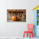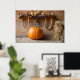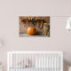 Affiches Farmers Museum. Pumpkin in barn with bale of hay