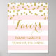 Faveurs affiche pour baby shower, douche nuptiale, ou mariage en rose clair et rayures blanches motif avec confetti d'or, s'il vous plaît noter que l'or est effet photographique seulement. Idéal pour une douche de baby shower, mariage ou nuptiale.