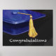 Vous ou quelqu'un que vous connaissez êtes diplômé ! Yay ! Envoyez vos félicitations avec notre design élégant avec notre art original d'une casquette de graduation bleue avec un moule jaune contre un arrière - plan noir texturé et le mot, Félicitations sur le fond. Conception personnalisée disponible.