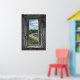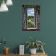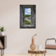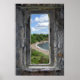 Affiches Fenêtre en pierre encadrant une plage et des arbre