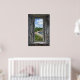 Fenêtre du château donnant sur la plage de sable Cette scène d'une plage de sable bordée d'arbres est l'une des deux - accrochez ces deux tableaux qui ressemblent à des fenêtres sur le même mur pour créer une vue magnifique à l'extérieur. La scène est constituée par la mer qui se brise doucement sur le sable, où l'on peut voir des traces de pas le long de la plage. L'herbe marine et l'ajonc se trouvent sous la fenêtre en pierre qui a été photographiée dans un véritable château écossais. Au loin, on aperçoit les escaliers en pierre qui auraient inspiré "Les 39 marches".