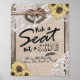 Panneau de Mariage de Style Campagnard Rustique / Modèles d'Affiche Choisissez un Siège et non un Parti - Couple de Vieux Fers à Cheval avec Nœud de Corde et Tournesols, Dentelle Blanche, Toile de Jute sur Fond de Bois de Grange Ancien.