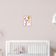 Cette affiche pour la pépinière présente une illustration d'un flamant rose avec un palmier et une bordure rose. Personnalisez le nom en vert.