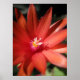 Une macro photographie d'une fleur rouge de Cactus de Noël en pleine floraison.
