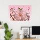Cette belle affiche présente une exquise fleur de cerisier rose pâle avec des gouttelettes d'eau provenant d'une pluie récente baignée par une lumière brillante rosée. Il est situé sur un dégradé rose pastel avec une bordure rose plus foncée. Fêtez le retour du printemps et du temps chaud!
