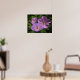 Cette affiche présente des fleurs magenta pourpre Cranesbill Geranium, chacune avec un beau centre jaune doré, et feuillage vert.