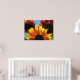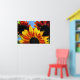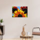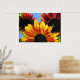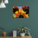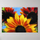 Cette affiche apportera de la luminosité et de l'acclamation à votre mur! Trois tournesols de couleur brillante sont illuminés par la lumière du soleil qui traverse les pétales. Les fleurs présentent une magnifique palette d'or, jaune, orange, rouge et marron. Feuilles verts et ciel bleu complètent cette composition de couleur et de forme.