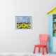 Vue sur jardin de tournesol estival, fausse scène de fenêtre, pour un mur de bureau sans fenêtre. Illusion d'optique réaliste et amusante affiche pittoresque pour un bureau ou un mur d'étude.