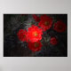 De belles fleurs de cactus rouges pointées contre un arrière - plan assombri. Oeuvre d'art très frappante accrochée au mur.