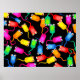 Illustration de beaucoup de souris informatiques colorées qui ont des yeux de dessin animé et des queues de souris qui courent autour contre un arrière - plan noir. Image disponible sur divers cadeaux et produits.