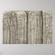 Affiches Forêt B&W avec brouillard matinal derrière les arb