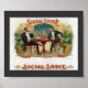 Publicité design vintage pour cigares. La scène représente deux messieurs habillés en tuxedos, assis à une table dans un salon à cigares avec la véranda ouverte de l'arrière - plan.