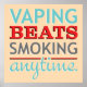 Design typographique sur la vapeur, avec la devise "Vaping beats fume à tout moment" écrite en vert, rouge et gris vibrants. Un message superbe pour le plaisir - et les avantages - de cesser de fumer par l'intermédiaire de l'ecig.