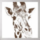 Ce design amusant présente une image pop art d'une girafe, en marron, sur un arrière - plan blanc.