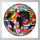 Illustration d'un globe formé de drapeaux internationaux et d'une carte du monde entier au sommet. Customisez facilement et choisissez votre propre couleur arrière - plan. Image disponible sur divers cadeaux et produits.