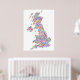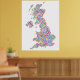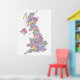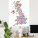 Une carte texte typographique de la Grande-Bretagne montrant plus de 500 villes au Royaume-Uni, texte multicolore sur un arrière - plan blanc.