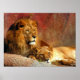 Belle scène où se trouvent des lions mâles et femelles se reposant ensemble.