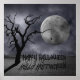 Illustration d'Halloween effrayante : paysage Éffrayant de nuit avec la pleine lune, nuages et une silhouette d'arbre foncé avec une araignée pendante.