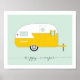 Cette impression d'art présente une illustration originale de Charming Ink d'un camper rétro, également connu sous le nom de caravane. La police de script proclame — joyeux camper.