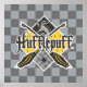 Découvrez cette Maison Crest pour Hufflepuff inspirée de Quidditch, avec le Badger Hufflepuff et deux broomsticks croisés.