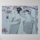 Impression vintage de deux filles jouissant des fleurs du printemps