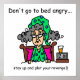 T-shirts d'humour heure du coucher, tasses, magnet, cartes, autocollants, sacs, mousepads, coussins, ornements, boîtes de souvenir, et plus avec les pensées de Stella sur l'heure du coucher. Elle proclame que vous ne devriez pas aller au lit fâché mais rester et tracer votre vengeance !