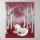 Terrain d'imaginaire rouge et blanc avec une licorne blanche parmi les arbres rouges et blancs
