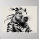 Cette image représente un capybara anthropomorphe étonnamment cool, stylisé comme un motard rebelle. Le personnage porte une veste en cuir robuste et un bandana à motifs, dégageant un charisme, une confiance et un peu d'esprit sauvage.
