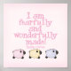 Cette gravure murale en pépinière a trois mignons agneaux pastel avec écritures en rose des Psaumes 139:14 qui dit "Je suis terriblement et merveilleusement fait" sur les t-shirts, boutons, autocollants et cadeaux plus chrétiens pour enfants et bébés.