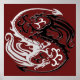 Aimez les dragons ? Vous aimez le symbole du Yin yang ? Que ce produit soit pour vous ! C'est un dessin de deux dragons formant le Yin yang sur un arrière - plan rouge foncé.