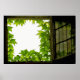 Vielle fenêtre encadrée de feuilles de raisins verts, effet peinture