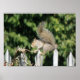 L'une d'une série d'estampes montrant un adorable écureuil gris équilibrant sur une clôture.