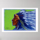 Le chef indien d'Amérique ancienne porte un point mort de l'intérieur de son coeur, voyant la beauté tout autour de lui tout en étant confronté au chaos, il voit la paix. Blue Indian absorbe les essais du monde de la machine avec un regard qui porte la vie.