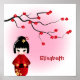 On this item, you see a cute kawaii kokeshi with red kimono, standing at a sakura tree