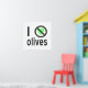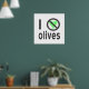 Je déteste les olives. Design utilise des lettres noires, un coeur vert et le signe international "NON" pour lire, "Je déteste les olives". Pour ceux qui ne les "coeur" pas, vraiment les détestent, mais ont un sens de l'humour (humour), l'amour de rire et de faire chatouiller leur drôle d'os.