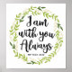 Élégant script de brosse à main Typographie Conception avec un laurier dessiné à la main vert aquarelle wreath en vert et bronze présente les paroles de la Grande Commission de Jésus données à ses disciples dans l'Evangile de Matthieu, 28:20, "Je suis avec toi toujours".