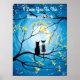 Je T'Aime À La Lune et Au Retour. Deux chats assis sur une branche regardant la pleine lune avec un ciel bleu rempli d'étoiles. Les branches des arbres qui les entourent de petites fleurs jaunes. chat tuxedo noir et chat tacheté blanc et gris bicolore. Idéal pour les amis, les amitiés, les relations et la famille. Peinture acrylique moderne originale de Whimsical par Donna Leger. Tous droits réservés. ©dessins ironiques